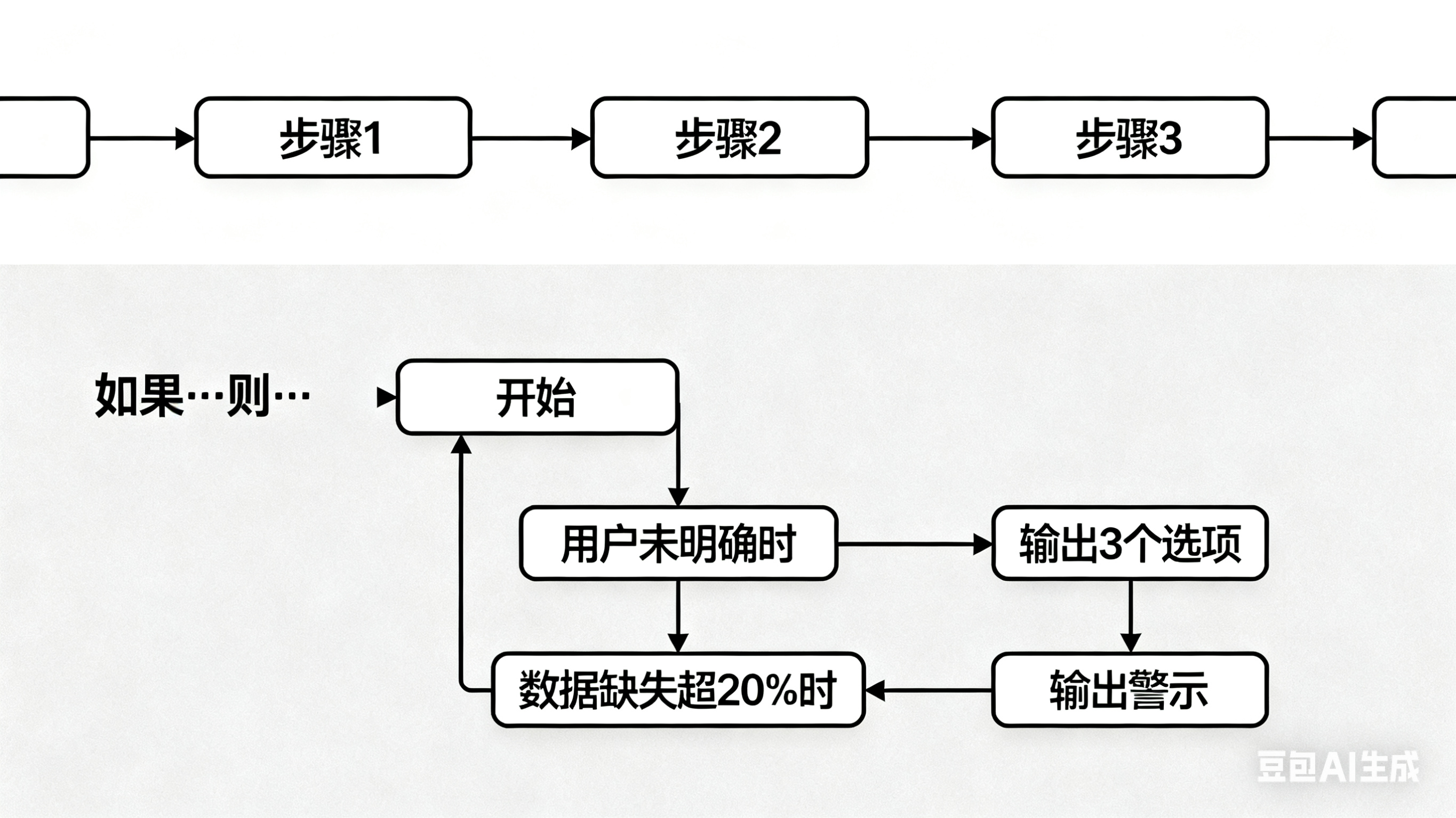 ✅ 高手指令:“第一步,作为数据分析师…;第二步,切换业务顾问…;第三步,化身文案专家…”